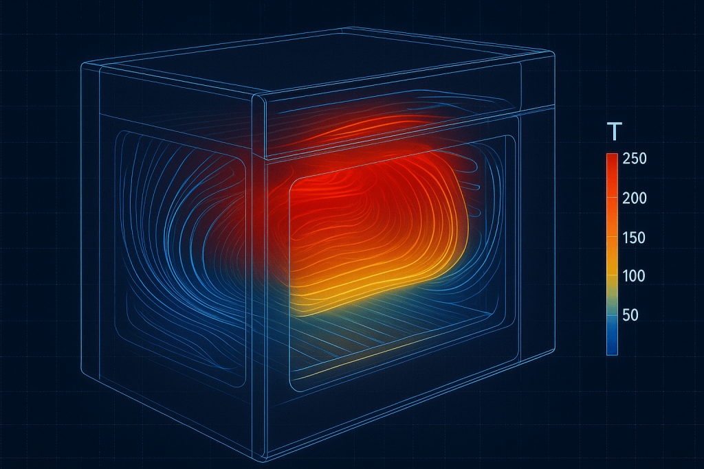 By analyzing airflow, optimize air jet patterns and fan placement, thermal distribution, predict temperature uniformity, moisture and contaminant transport—phenomena nearly impossible to measure everywhere with sensors, you can see much more.