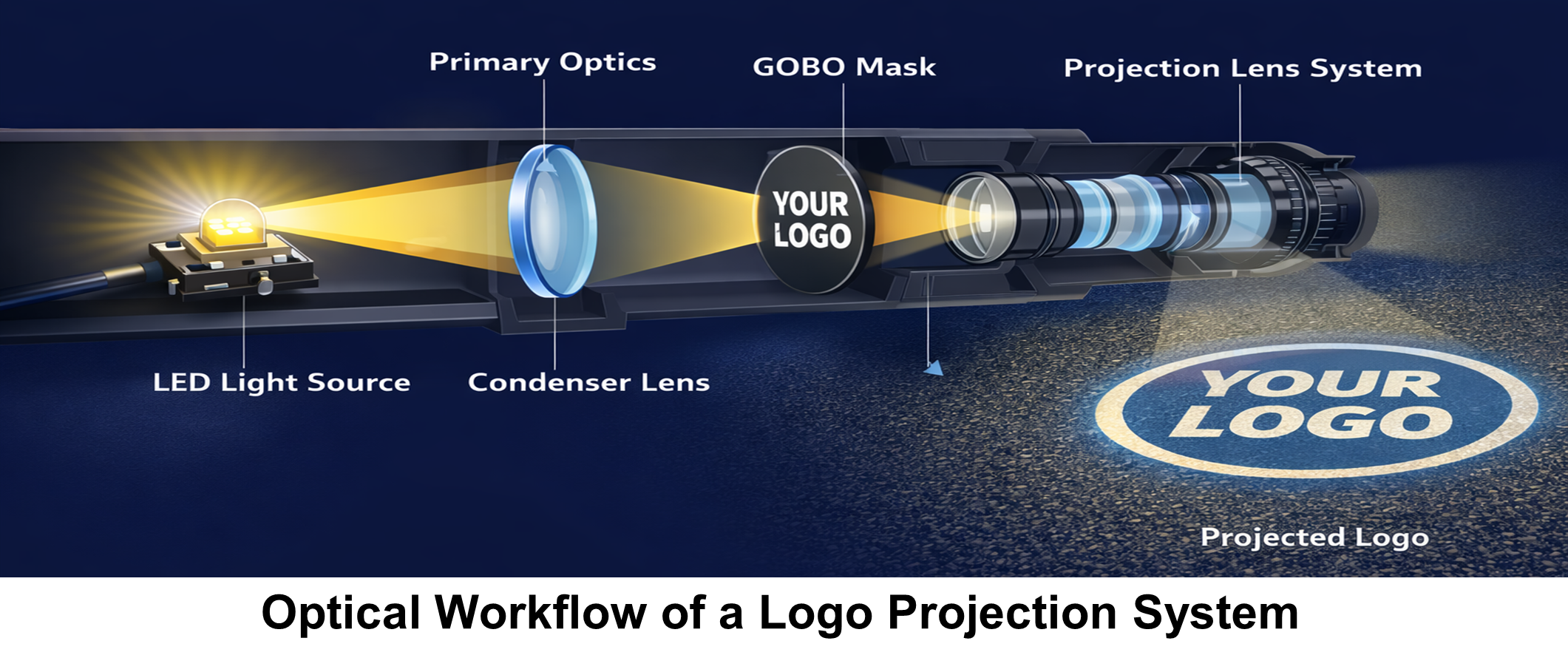 What makes logo projection systems unique is their ability to use light to display clear, sharp, and eye-catching. However, achieving this clarity is complex, requiring careful consideration of factors such as lens design, light distribution, and image consistency under varying conditions. Even small design errors can result in blur, distortion, or uneven brightness.